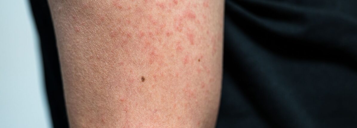 • Manchas vermelhas na pele que começam no rosto e se espalham pelo corpo